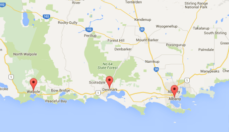 WA’s “Rainbow Coast” is between the 3 map markers