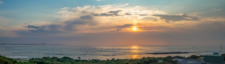 On the last morning before leaving Peaceful Bay, we finally received still weather. Here’s a sunrise pano image over Peaceful Bay.