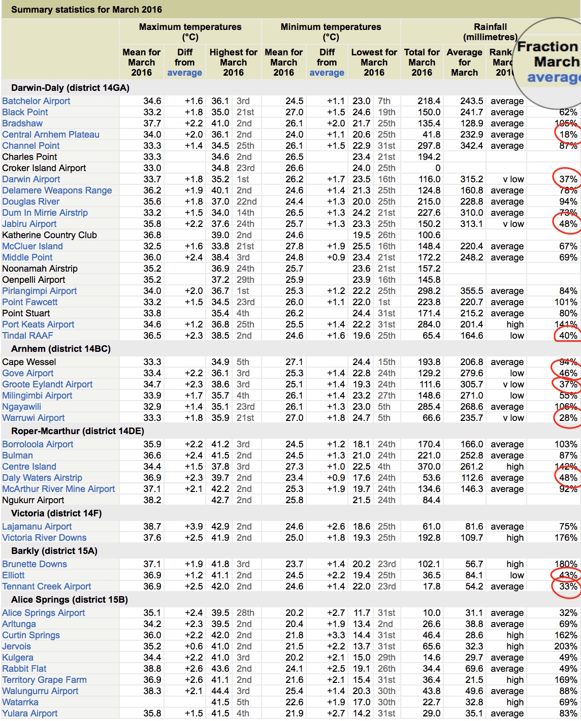 NT March 2016 rain figures
